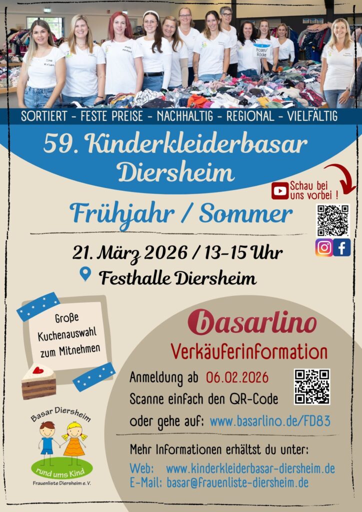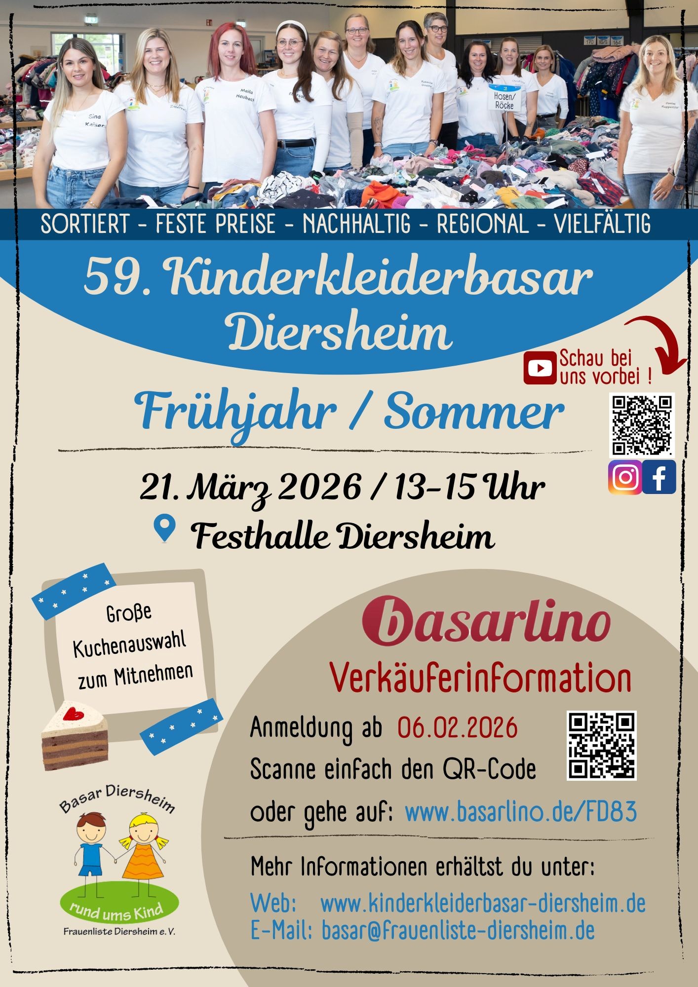 Die Frauenliste Diersheim e.V. organisiert zwei Mal im Jahr den „Kinderkleiderbasar Diersheim“ in der Festhalle in Diersheim, Frühjahr – Sommer / Herbst – Winter.